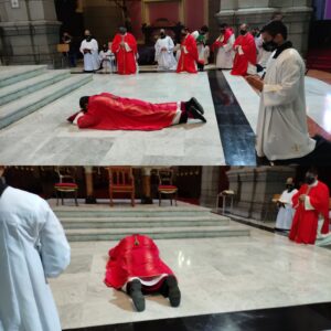 El Obispo Auxiliar Mons. Luis Enrique Rojas Ruiz presidió las ceremonias de este Viernes Santo que comenzaron con su postración ante el altar, momento de oración ante la Pasión, Muerte y Resurrección de Nuestro Señor Jesucristo.