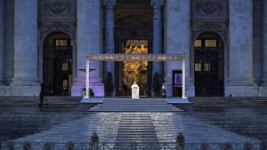 El Pontífice también ha elevado una súplica en estos momentos de prueba: “mientras estamos en mares agitados, te suplicamos: “Despierta, Señor””. El Papa asegura que hemos avanzado rápidamente, sintiéndonos fuertes y capaces de todo y codiciosos de ganancias – dice – “nos hemos dejado absorber por lo material y trastornar por la prisa”. Es en este momento en el que el Papa, dirigiéndose al Señor, asegura que “no nos hemos detenido ante sus llamadas”, tampoco “nos hemos despertado ante guerras e injusticias del mundo” ni “hemos escuchado el grito de los pobres y de nuestro planeta gravemente enfermo”. De hecho, dice, “hemos continuado imperturbables, pensando en mantenernos siempre sanos en un mundo enfermo”.