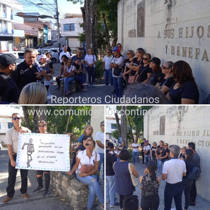 Profesores activos, jubilados y pensionados acompañados también del personal obrero y administrativo de las instituciones educativas nacionales y estatal se concentraron en la ciudad de Tovar del estado Mérida hoy 15 de enero Día Nacional del Maestro para protestar por salarios más justos.