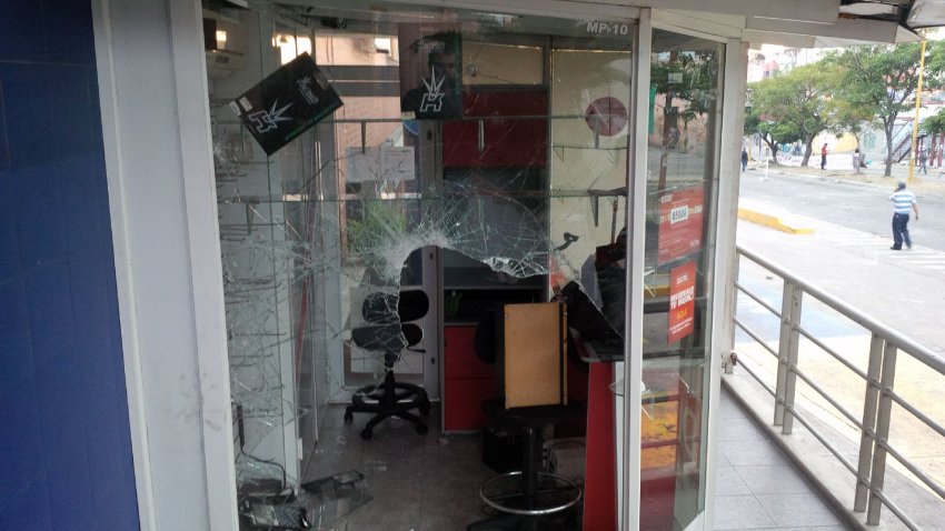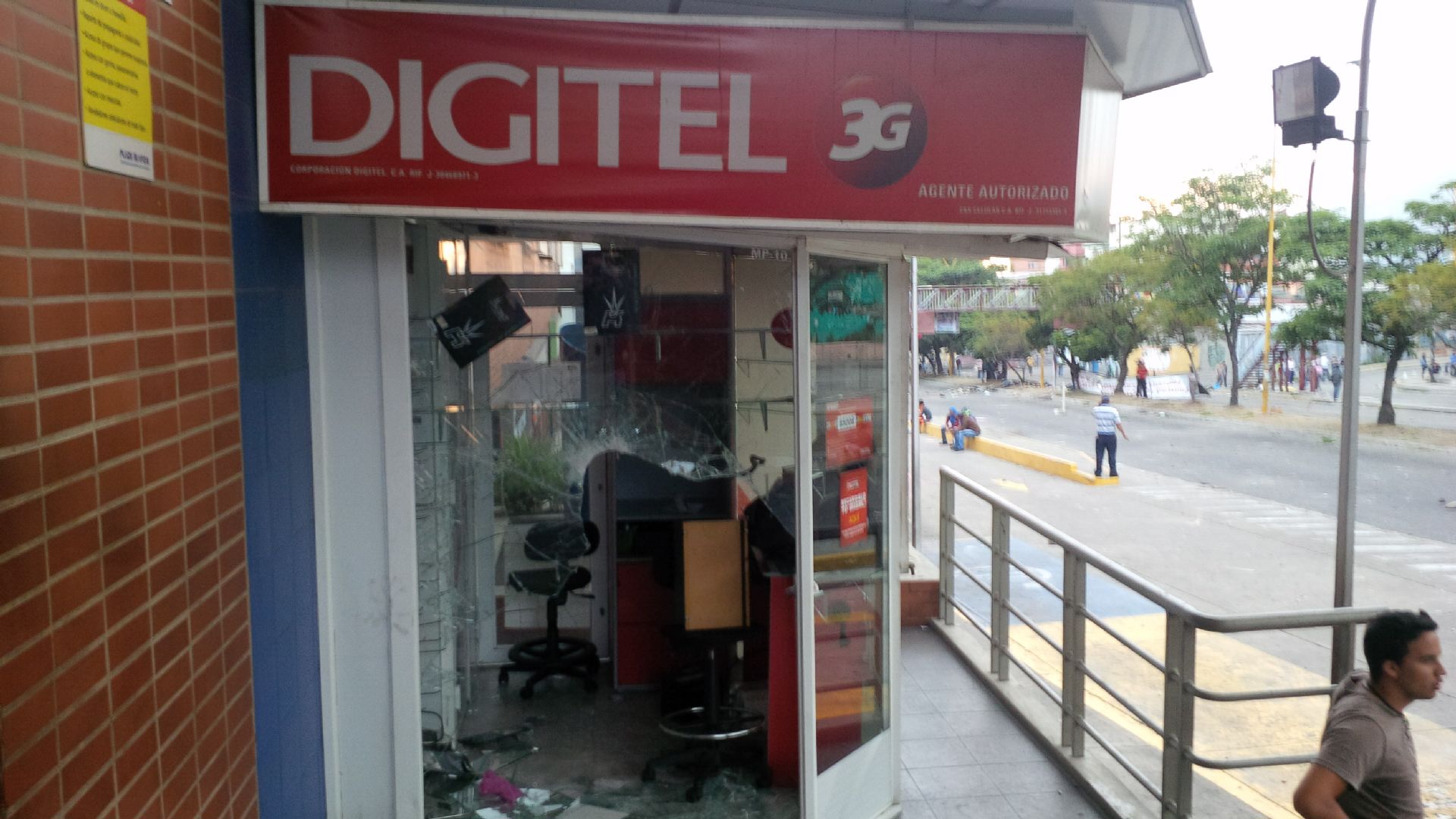 El módulo de Digitel ubicado en la entrada de C.C Plaza Mayor en Mérida fue saqueado por grupo de motorizados que se concentraban en las afueras de ese centro comercial cuando enfrentaban los manifestantes que se encontraban en el sector El Campito.