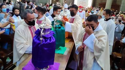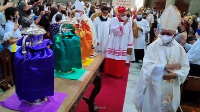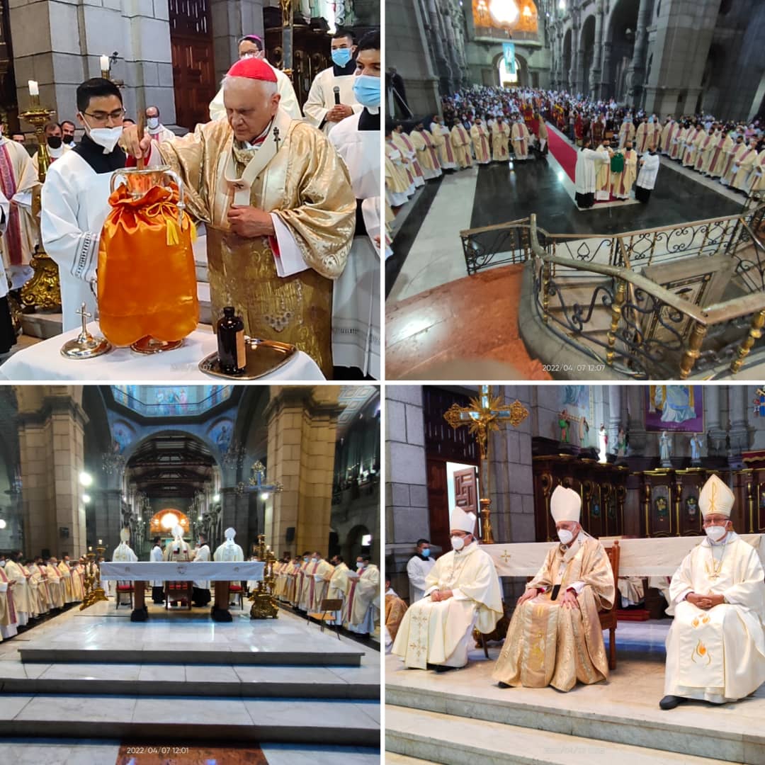 Desde la Catedral de Mérida, Basílica Menor Inmaculada Concepción, se realizó la Misa Crismal de bendición de los Santos óleos que utilizarán en las parroquias durante el año presente y el venidero en los Sacramentos. La Santa Eucaristía fue presidida por el Eminentísimo Mons. Baltazar Enrique Cardenal Porras Cardozo, Arzobispo de Mérida, acompañado por su excelentísimo Mons. Luis Enrique Rojas Ruiz, Obispo Auxiliar, excelentísimo Mons. Alfredo Torres, Obispo de la Diócesis de San Fernando de Apure, diáconos permanentes, clero, religiosos y feligresía en general.