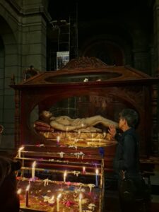 Semper Grata, o la perenne gratitud que brota incluso del quebranto, se manifestó con especial fulgor en aquellos que desafiaron sus propias limitaciones biológicas para salir al encuentro de lo sagrado. En las naves de nuestros templos andinos se hizo visible una conmovedora fenomenología de la fe: cuerpos doblegados por la enfermedad que, sin embargo, permanecían erguidos en espíritu. Para estos fieles, la peregrinación no fue un acto de masoquismo, sino una transfiguración del dolor en ofrenda. En cada paso vacilante y en cada mirada fija en el crucificado, parecía resonar la certeza ontológica del Salmo 26: «El Señor es mi luz y mi salvación; ¿a quién temeré?». La dolencia física dejó de ser un obstáculo para convertirse en el altar mismo donde se tributaba el amor a Dios.