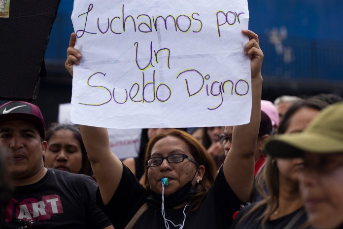 Desde marzo de 2022, el salario mínimo, referencia para el resto de remuneraciones, se ha mantenido en 130 bolívares mensuales (actualmente 1,5 dólares), monto que sumado a bonos gubernamentales que reciben los empleados públicos -sin incidencia en beneficios laborales- alcanza hasta 131,5 dólares al mes, pagados en bolívares a la tasa de cambio oficial.